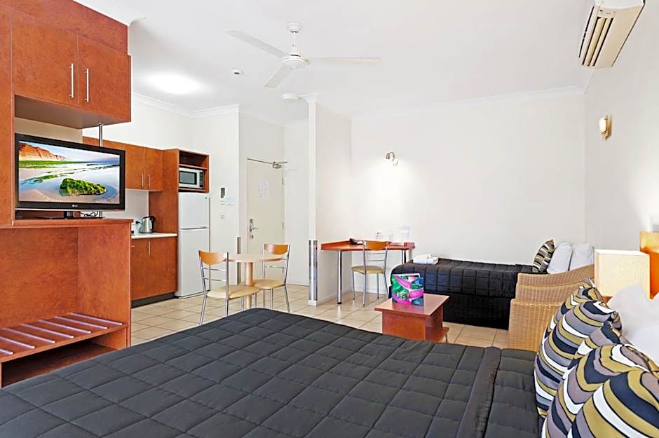 Making reservations for Cairns Queens Court on this website is a secure and straightforward process. To check the nightly rates of Cairns Queens Court, simply begin by selecting the desired dates/length of stay and click the "Check Rates" button. Comparison and decisions can then be made with the display of pricing information for each style of guest room. Information regarding room features and amenities is provided in the center of the screen. Having made the decision for dates, room style, and rates, simply locate and click on the "Book Now" button on the right hand side of the screen.